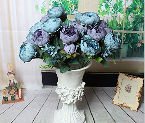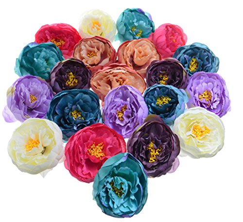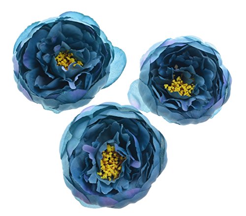 Pack of 6 Wedding Favor Vintage Flower Head Artificial 3.8 Inch Silk Peony Heads for Bridal Shower Decorations Replacement for Flowers Bouquet - Blue#2