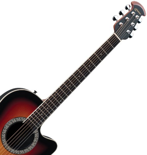 The Celebrity CA24-1 acoustic-electric guitar is Ovation's lowest cost acoustic/electric guitar with a retail price too low to believe. Ovation's cutting-edge design and innovation has kept them at the forefront of acoustic and acoustic-electric guitar building. Like other popular Celebrity models, the CA24 features a multitude of player-friendly options including a mid-depth cutaway roundback body, low-profile neck shape, lightweight scalloped top bracing, and Ovation's own OP4B preamp - voiced to optimize balance and note-to-note accuracy. Neck: Nato Neck Finish: Natural Satin Peghead Finish: Gloss Black Fingerboard: Rosewood Inlays: Acrylic Dots Binding: Ivory Scale Length: 25.25" Bridge: Walnut Tuners: Chrome Ovation Preamp: Ovation OP4B Pickup: Ovation Slimline
