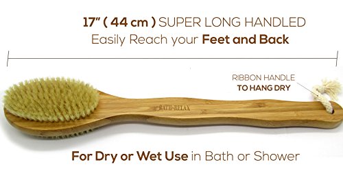 17" VERY LONG Handled Bath & Relax Highest Quality Bamboo Matte Finish Bath Brush is the perfect Brush for Reach those hard-to-reach areas of the body with the brushes in this deluxe bath brush pack.