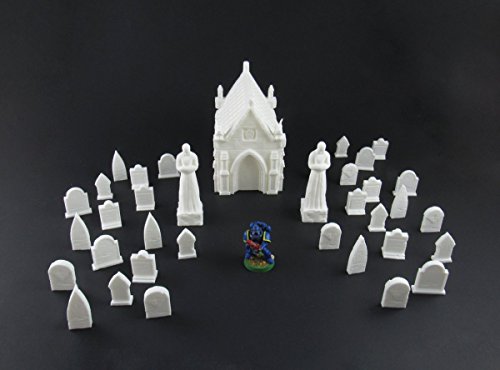 ? 1 Mausoleum - 93 x 72 x 108 mm ? 2 Statues - 80 x 21 x 21 mm ? 6 Type 1 Tombstones - 28 x 20 x 6 mm ? 6 Type 2 Tombstones - 28 x 20 x 6 mm ? 6 Type 3 Tombstones - 28 x 20 x 6 mm ? 6 Type 4 Tombstones - 28 x 20 x 6 mm ? 8 Type 5 Tombstones - 28 x 20 x 6 mm