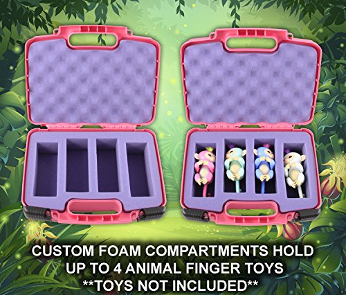Studio : CASEMATIX Publisher : CASEMATIX Binding : Toy Product Description CASEMATIX Protective Children's Case Designed To Store FOUR Fingerlings Baby Monkey Collector Toys - PINK Keep your friendly Fingerlings Baby Monkey Toys Stored and Protected at all times with this fun colorful carrying case. The Rugged plastic outer shell and padded interior protects and keeps your beloved toys safe. A Custom Designed padded foam Interior has four separate storage areas to keep Fingerlings stored, protected and separated. MADE IN THE USA. Kid Friendly Playful Design - PINK SHELL WITH PURPLE FOAM This case is perfect for traveling with the fingerlings when having a playdate at a friend's house, vacationing , park and more. Don't worry about misplacing your favorite toys because this case keeps them all in one place. As well, there is a convenient carrying handle and the compact size of 12" x 9.5" x 3.5" make it easy to leave in the car , stroller , backpack and more. The friendly design is great for kids of all ages. Designed With FOUR Custom Fingerlings Homes Within the Case - Keep your Fingerlings Safe The padded foam interior of the case absorbs impacts and rugged exterior keeps the toys safe from bumps, drops and wear and tear from the kids. The individual Foam Compartments snugly hold 4 different fingerlings and keep them seperated and protected from damage. INCLUDES CARRY CASE ONLY , FINGERLINGS NOT INCLUDED - Not Affiliated With FingerlingsTM . Any Use Of The FingerlingsTM Brand Names and Images Are For Demonstrating Compatibility 0