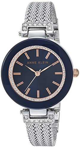 Anne Klein Women's AK/1907NVRT Swarovski Crystal Accented Silver-Tone Mesh Bracelet Watch