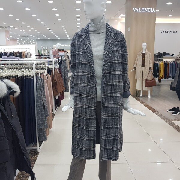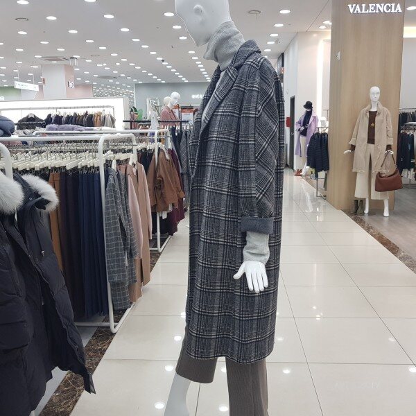 캐시미어가들어가있어 가볍고 부드러운코트로 박시하게 떨어지는 라인이 세련된 체크코트.