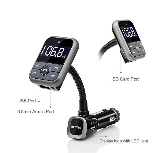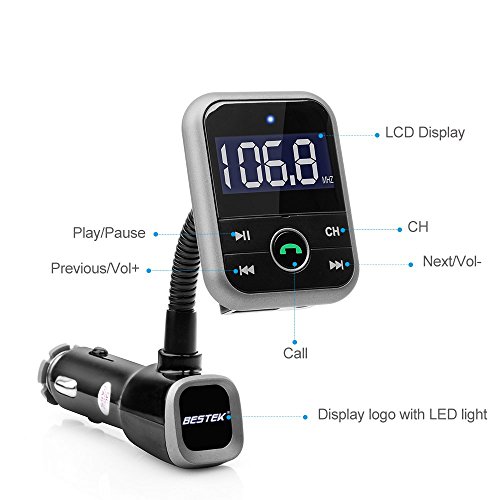 BESTEK Wireless In-Car Bluetooth FM Transmitter enables you to drive more safely. It is designed to transmit phone call and music from bluetooth devices to the car FM stereo system. You may make or answer hands-free phone calls, enjoy wonderful music, use GPS voice navigation.