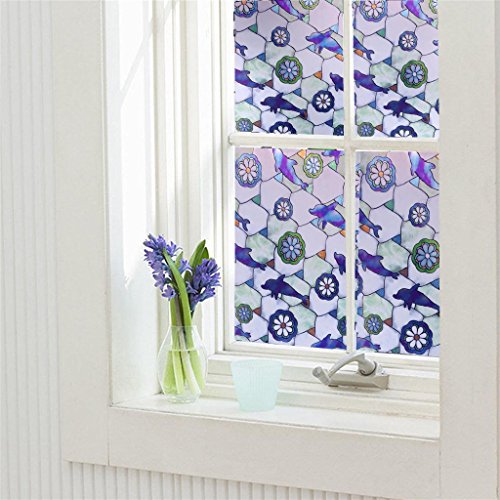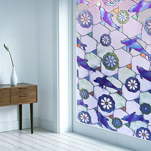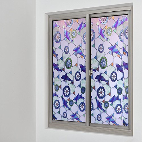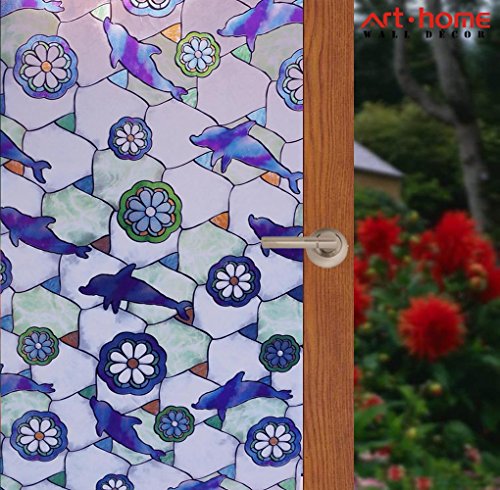 Arthome 35.4 x 100 inch Stained Decorative Window Glass Privacy Films No Glue Non-Adhesive Self Frosted Static Cling Removable Anti UV for Bathroom Door Bedroom Kitchen Office (90 x 254 CM, Dolphin)