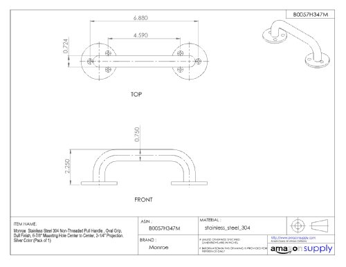 Monroe Stainless Steel 304 Non-Threaded Pull Handle , Oval Grip, Dull Finish, 6-7/8" Mounting Hole Center to Center, 2-1/4" Projection, Silver Color (Pack of 1)