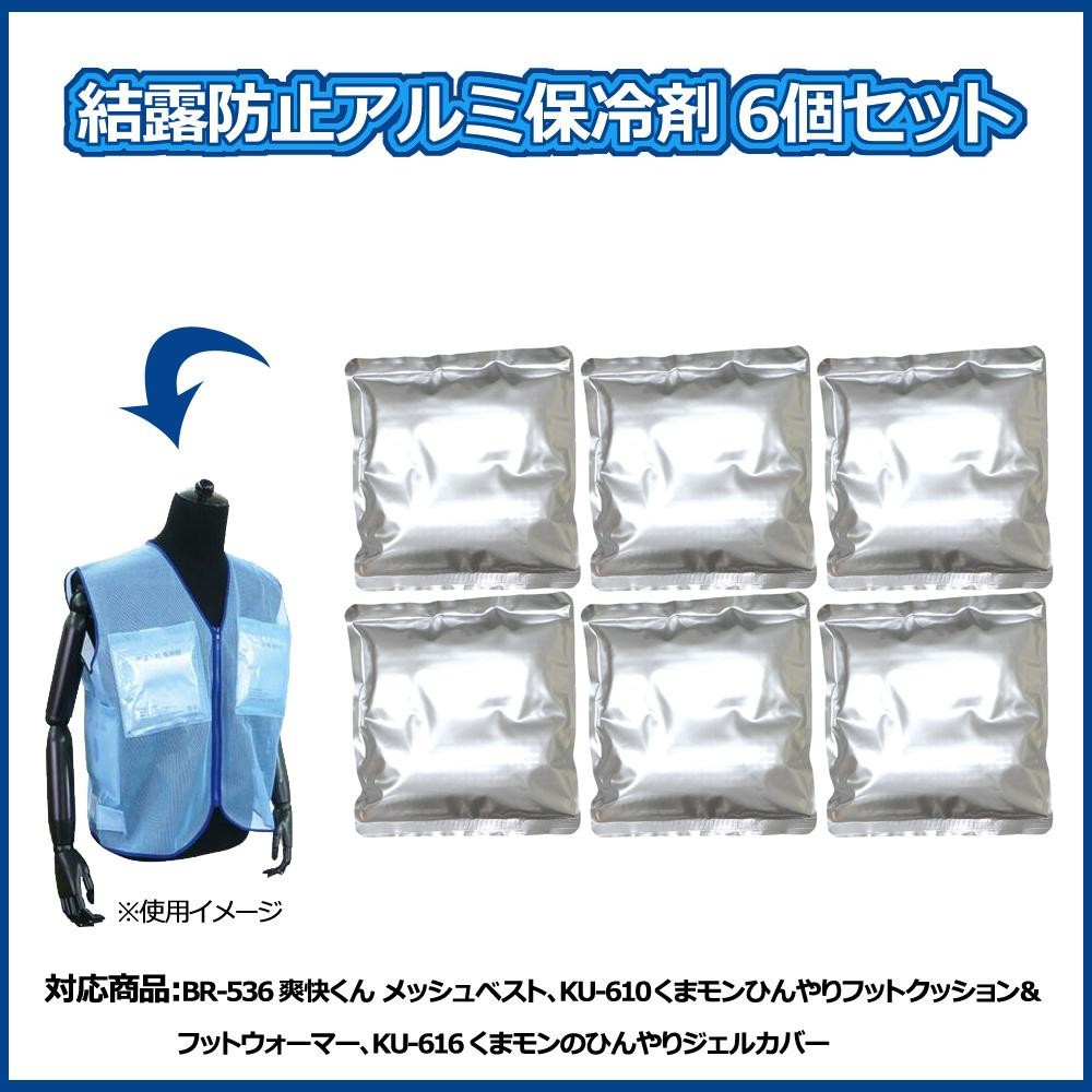 結露が生じにくいアルミタイプの保冷剤です。ジェル保冷剤ですので冷凍庫で冷凍して使用可能です。 製造国:日本 素材・材質:アルミ蒸着PP、水、高分子樹脂 商品サイズ:約160×170mm 重量:約200g 仕様:保冷剤持続時間:約2~4時間程度(使用場所により異なります) セット内容:保冷剤×6個 ※サプライヤー直送品 ご注文後3~4営業日後の出荷となります【商品名】結露防止アルミ保冷剤 6個セット BR-539