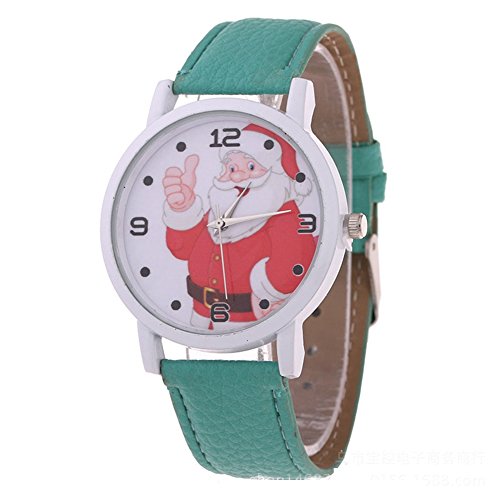 -. Title : LinTimes Artificial Leather Christmas Father Santa Claus Quartz Wrist Watch for Women Kids Boys Girls Green
