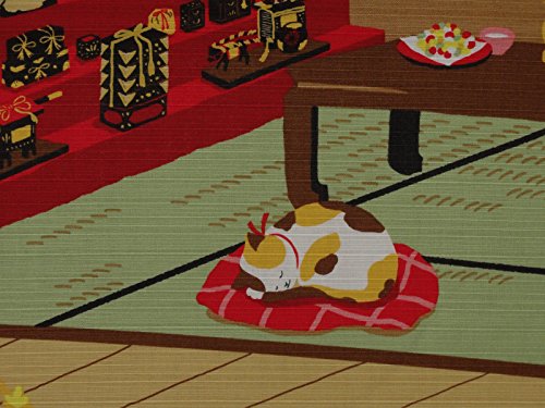 Furoshiki Cat and Hina Matsuri Girl's Day Dolls Motif Japanese Fabric 50cm