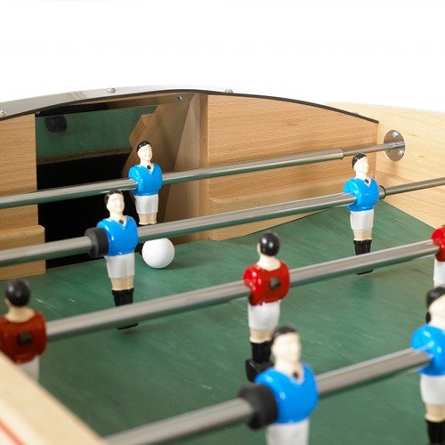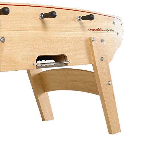 Studio : Rene Pierre Publisher : Rene Pierre Binding : Misc. Product Description When you are looking for a foosball table that looks classic but has a touch of sophistication, the Rene Pierre Competition Foosball Table is an ideal choice. Handmade and designed in France by French artisans, the cabinet is 0.78 inches thick and is made of natural beech wood. The same durable material is also used for its 1.57 inch thick legs that make the table even more durable even with frequent use. The table features chrome-plated steel telescoping rods with ergonomic handles which aid in smooth and effortless play and add to the overall appeal of the table. There are two teams of foosball players made of die-cast aluminum and a single goalie on each team making your table ready for rigorous games. The Competition foosball table also has built-in abacus scoring units and comes with two FREE cork foosballs. End your search for a new and complete foosball table and buy this number from Dazadi. Shipping is free for every purchase! 0