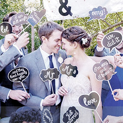 Faylapa Wedding Photo Booth Props - 10 Pieces DIY Photo Booth Signs for Valentine’s Day Wedding Engagement Bridal Sshower Party