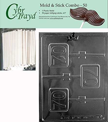 CybrTrayd 45St50-L063 No.70 Square Lolly Chocolate Candy Mold with 50 4.5" Lollipop Sticks, Clear