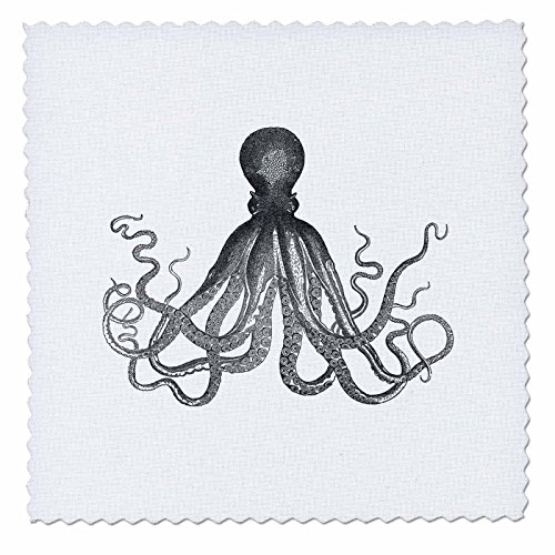 3dRose qs_112921_10 Vintage Octopus-Black and White Lord Bodner Kraken-Cthulu-Quilt Square, 25 by 25-Inch