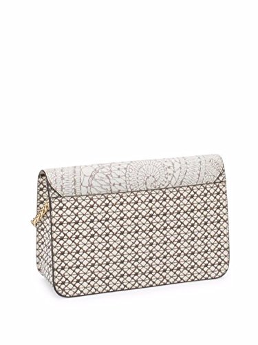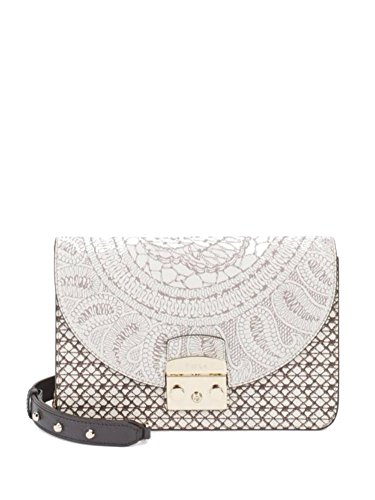 Product Description Leather lace-look shoulder bag with goldtone hardware Adjustable, removable crossbody strap, 14' drop Foldover top with pushlock close One interior zip pocket One interior slip pocket Goldtone hardware Dust bad included Metal feet Textile lining 9.5' L X 6.5' H X 3' W Leather Made in Italy 0