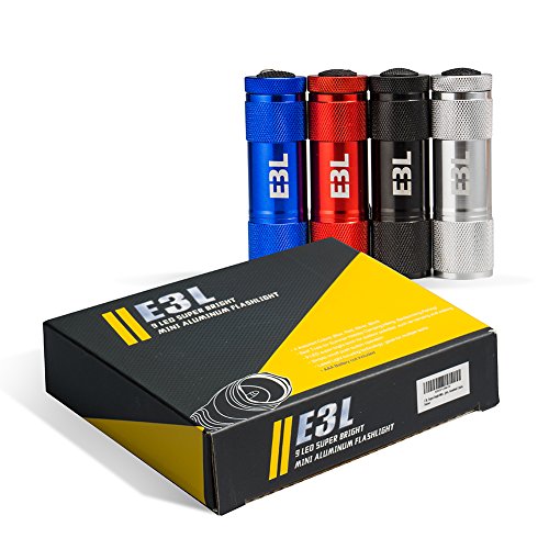 E3L Super Bright Mini Aluminum Flashlight with 9 LED Beads inside, Pack of 4 Mini Flashlights, Assorted Colors