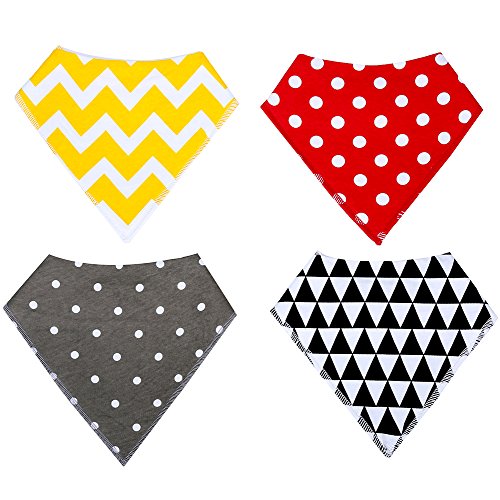 Have 2 snap closures making the bibs easily adjustable (no velcro) Are made of 100% cotton backed by absorbent fleece (no plastic) Are soft and comfortable to wear Don't cover up a baby's outfit but accessorize it Keep a baby dry longer - help protect against drool rash and reflux Look cool and fashionable unlike a regular bib Are great for droolers and teething babies. They are the perfect drool bibs! You can be assured these bibs will last the distance. They have been independently tested for shrinkage and colorfastness.