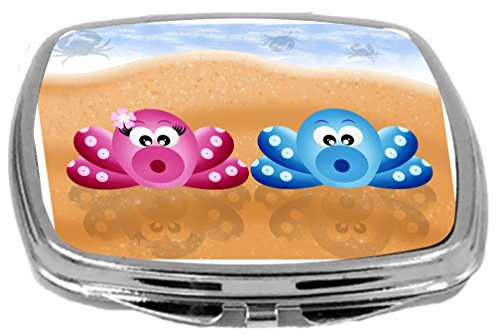 Rikki Knight Pink and Blue Octopus in Love Illustration Design Compact Mirror, 17 Ounce