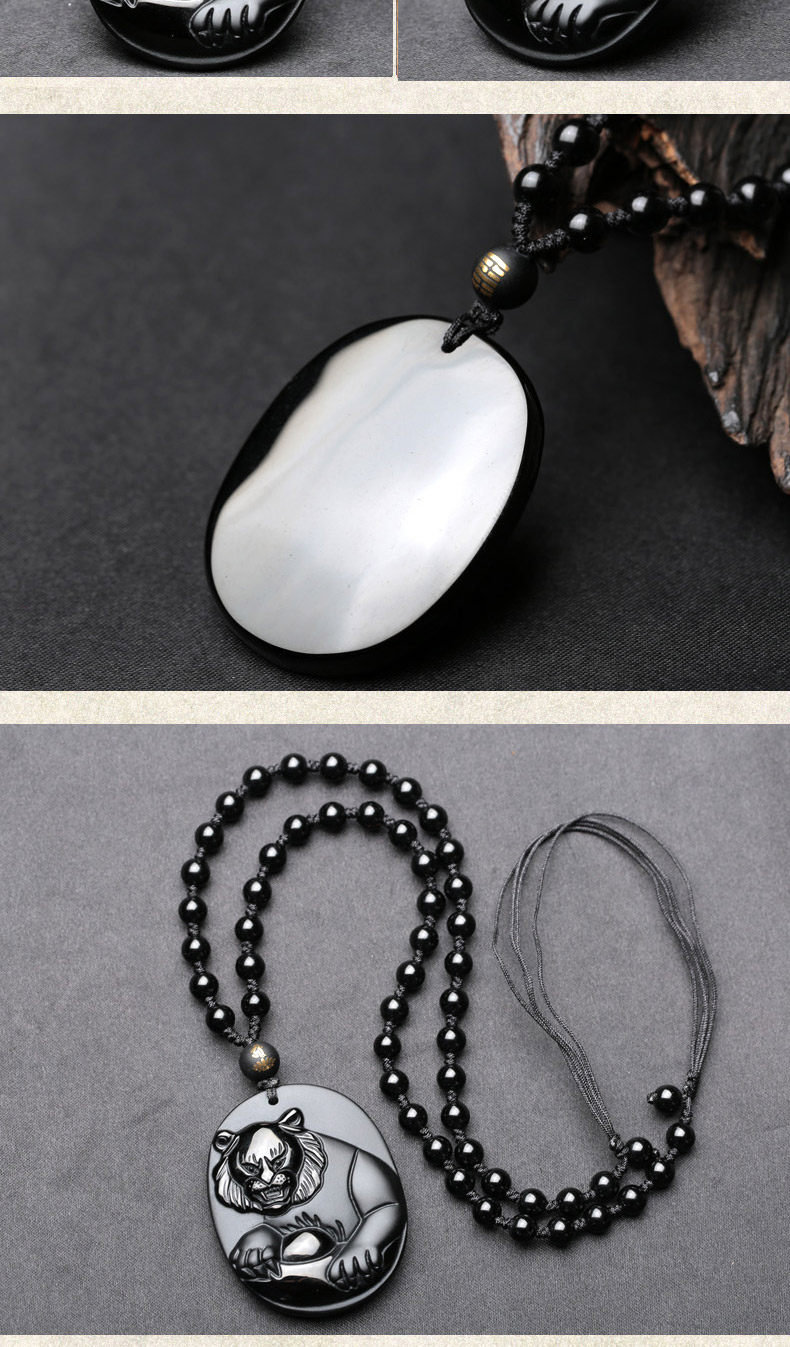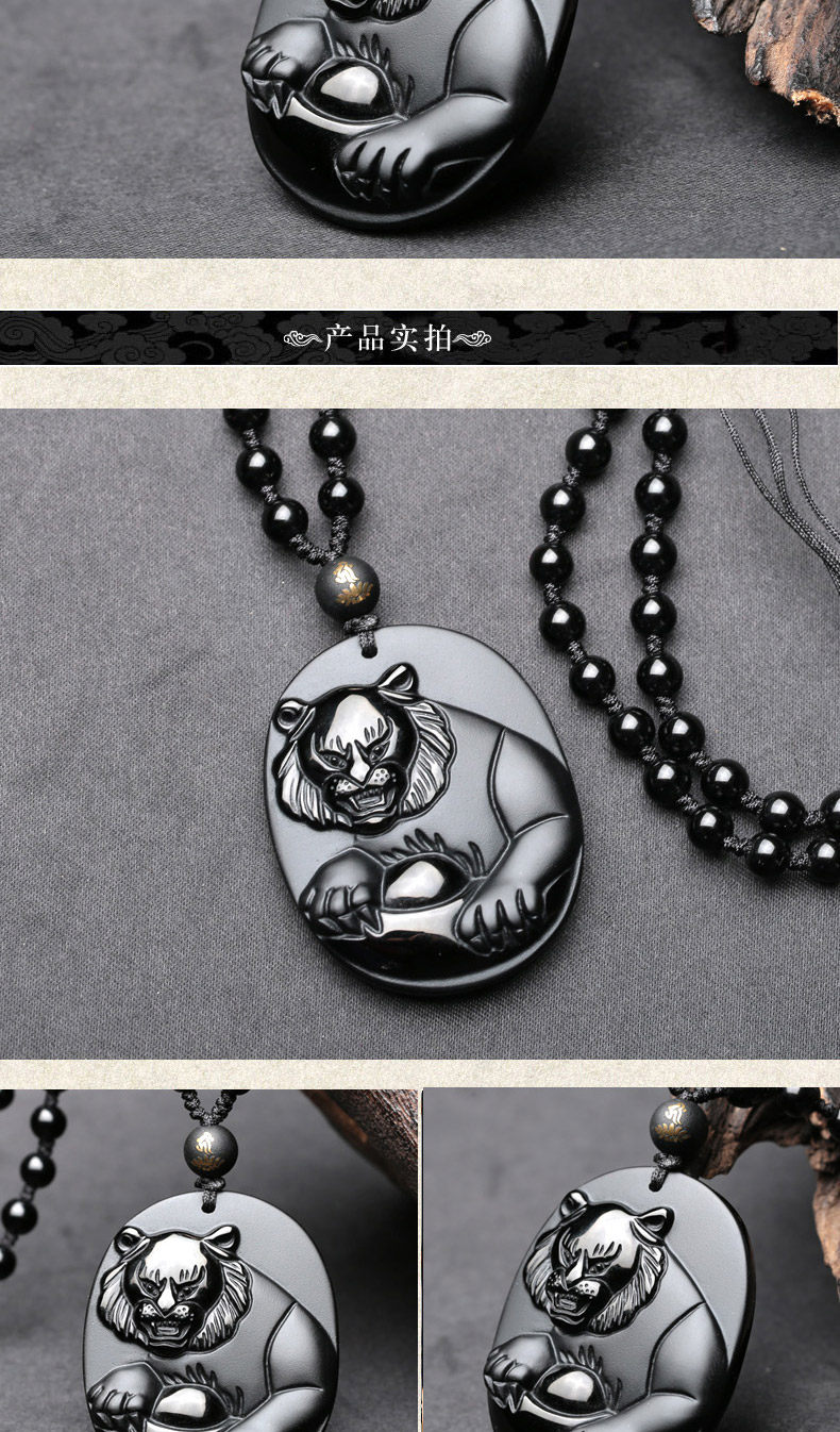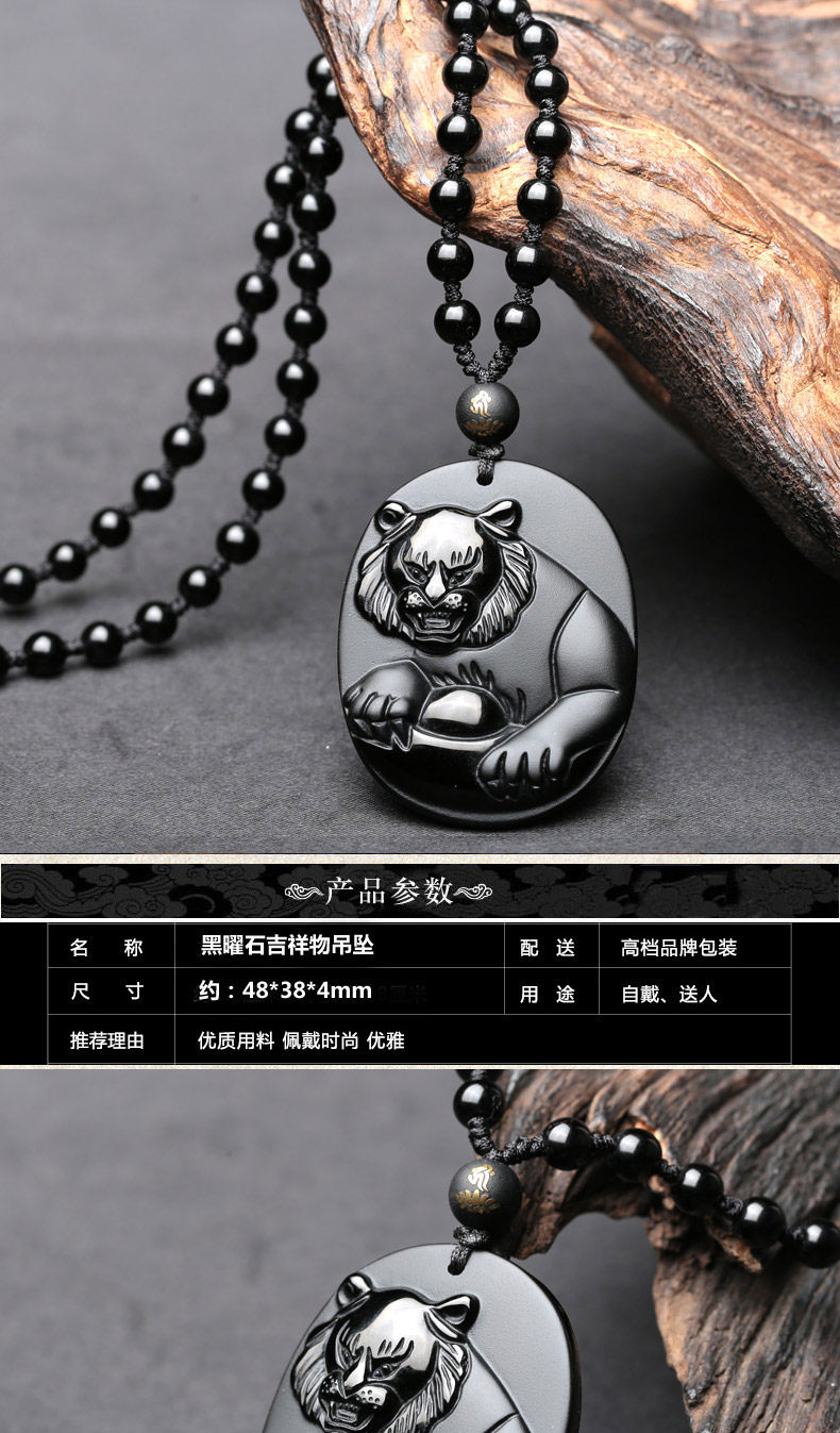 开光 天然黑曜石2017年生肖虎吉祥物【六合贵足】护身符吊坠