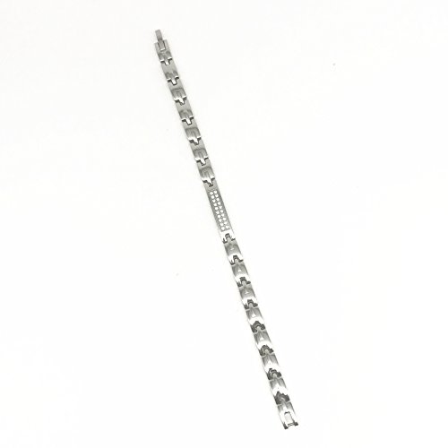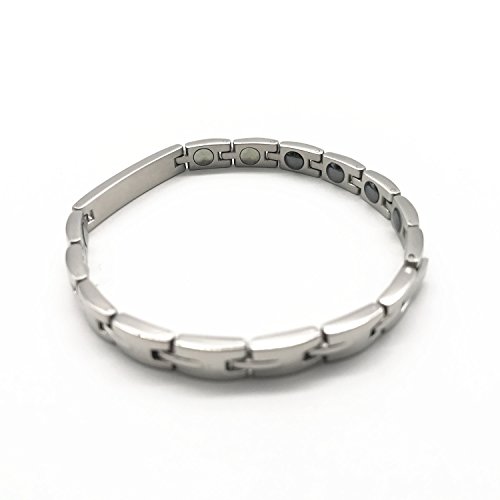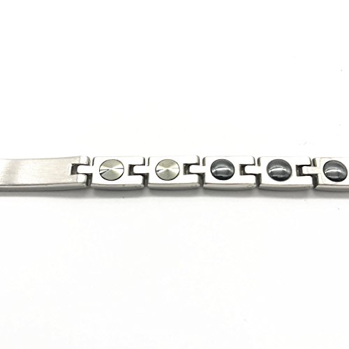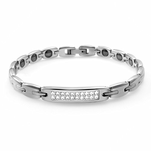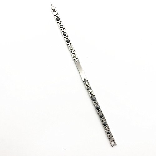 Grandoin (TM) germanium hematite bracelet stainless metal allergy-free zircon fashion (Silver)