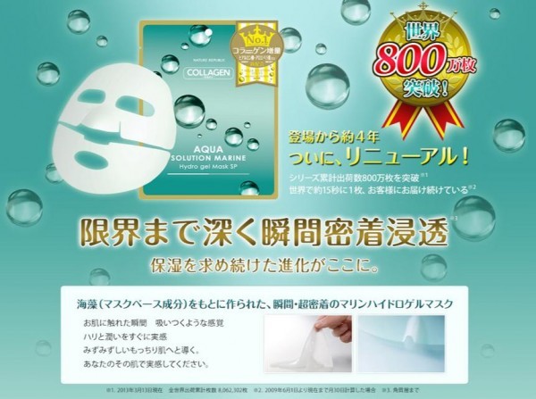 限界まで深く瞬間密着浸透(※1)。代表的な大人気のコラーゲンマスク♪ハイドロゲルの魅惑とは、この「ぷるぷる」なテクスチャー。海藻(マスクベース成分)をもとに作られた独特の弾力を持った保湿用マスクで、お顔にのせた瞬間、吸着するような密着感を実感いただけます。従来のマスクから、さらに保湿成分を高め、アナタの肌に更なる保湿と潤いを与えます。(※1.角質層まで) |