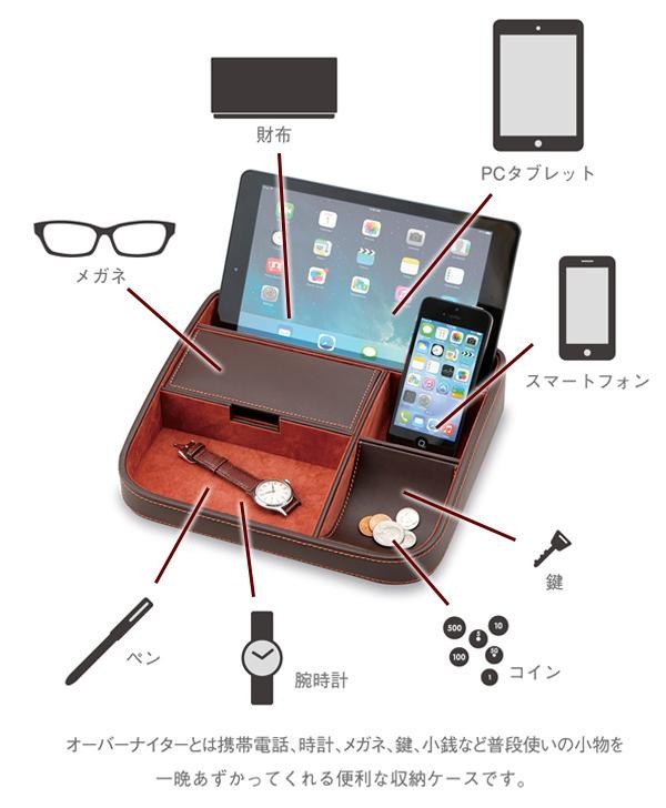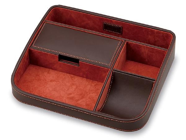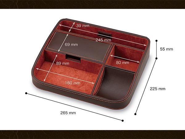 デイリーユースしている小物を入れるのにピッタリなオーバーナイターは帰宅後ポケットの中身を入れるだけの簡単収納。ブラウンのレザーになじむ赤色のベルベット生地、ラグジュアリーで洗練されたデザインは、お部屋をゆとりある上質な空間にしてくれます。 |