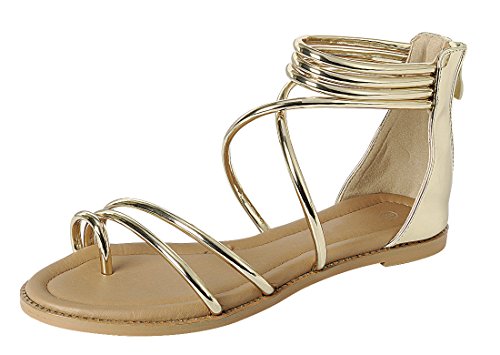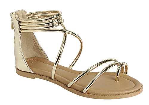 Cambridge Select Women's Crisscross Ankle Strappy Toe Ring Flat Sandal