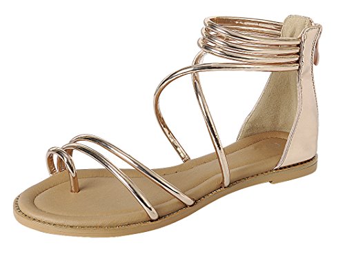Product DescriptionThis flat sandal from Cambridge Select features vamp and toe ring straps, a back zip, and a low, flat heel. Imported.0