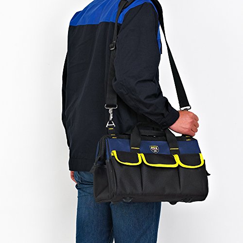 Large capacity & functional-putu hardware tools, garden tools, maintenance tools, electric tools, telecommunication tools etc. Shoulder strap is adjustable, fit both Regular and plus-size person.