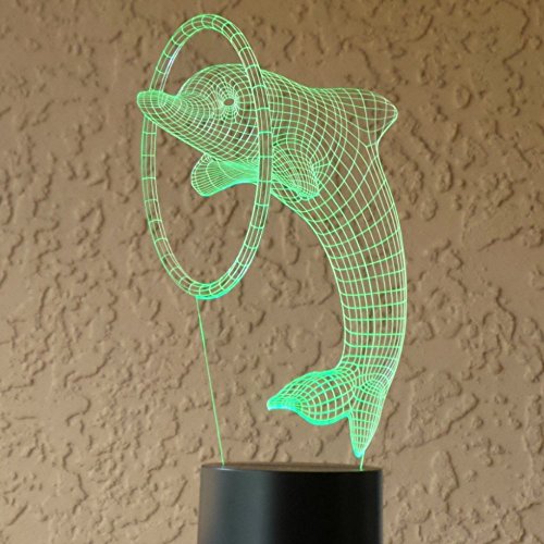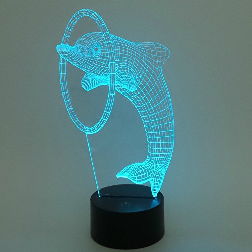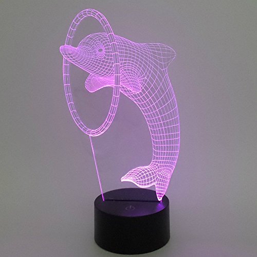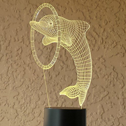 Description: AMPERSAND SHOPS Optical Illusion Laser Cut Precision Magical 3D Dolphin Lights Lamp is sure to turn heads and get you plenty of compliments! Transform your office, bedroom or local gathering place with this ultramodern and stunning 3D light sculpture. Because the 3D Illusion Light is powered by 9 long life, super bright LED lights, which never gets hot and use very little energy, this lamp is the perfect night light for your kids' rooms. Features: Eco-friendly, USB-powered for low energy consumption Comprised of 4 millimeter acrylic glass which is both durable and beautiful Change up the mood by selecting one of 7 different color modes just by pushing the control button on the base Package Contents: Laser sketched 3D acrylic plate Micro USB power cable Energy-efficient LED light base