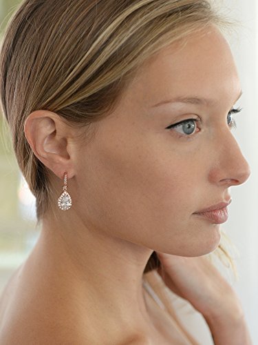 Mariell's designer bridal earrings are 1 1/8" h x 7/16" w with brilliant CZ pears set in Blush Rose Gold surrounded by sparkling Cubic Zirconia pave frames. This versatile new jewelry design has timeless beauty and is a customer favorite for wedding or evening wear. These Champagne Pink drop earrings are dainty in size but endless in sparkle. We promise you'll adore these top selling stunners or your Money-Back. Treat yourself or someone you love to some gorgeous sparkle with the look of fine jewelry at a fabulous low price. Enjoy Mariell's exclusive 100% Risk-Free Purchase and Lifetime Guarantee.Feature