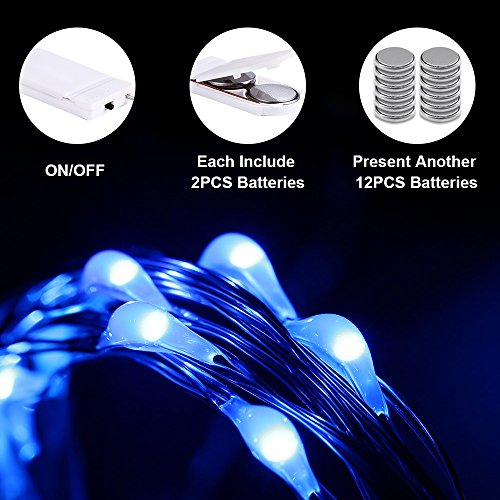 - 12 Pcs Fairy Led Lights: Adorable 12 pcs string lights in one pack, each has 20 LED on 7.2ft(0.98ft lead cable included), LED bulb spacing 0.32ft, illuminating fantastic blue light.