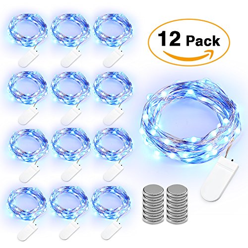 Brizled 12 Pack Fairy Lights, 7.2ft 20 LED Fairy String Lights Battery Powered Valentine's Lights Waterproof LED String Lights Silver Wire Lights for Bedroom, Wedding, Holiday, Xmas Decor, Blue
