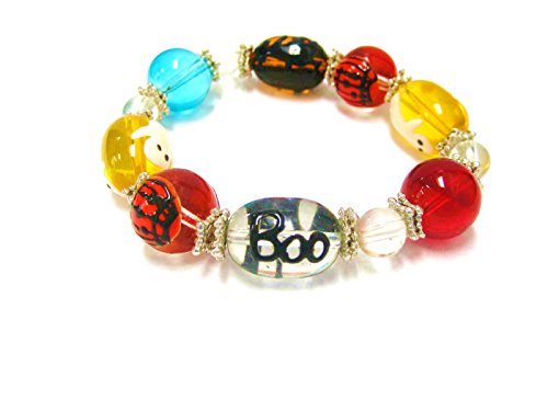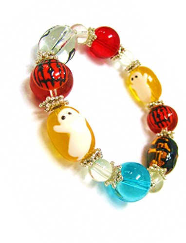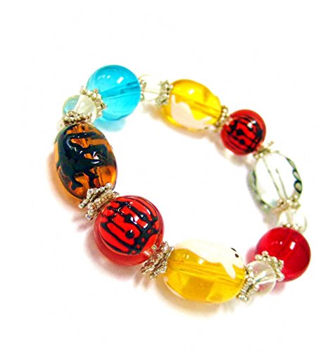 Linpeng 11 by 13mm Oval/8 to 14mm Round Hand Painted Glass Beads Beautiful Stretch Bracelet