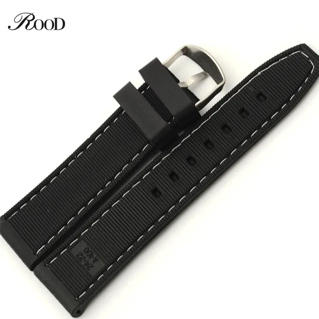 | [해외]고무 손목 24 미리메터 블랙 실리콘 고무 스포츠 시계 스트랩 rood 브랜드 럭셔리 착용 고무 벨트 남성 스포츠 손목 |