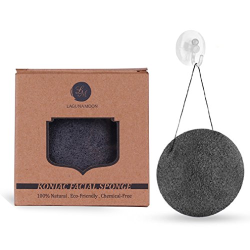 Lagunamoon Konjac Sponge Activated Charcoal Facial Cleansing Sponge Konjac Exfoliating Sponge for Face
