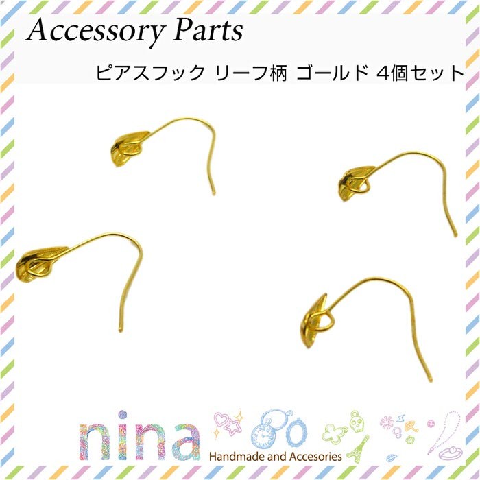 ■商品名:ピアスフック リーフ柄 ゴールド 4個セット
