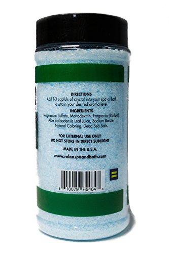 -. Feature : Eucalyptus Mint - 17 Oz Bottle - All Natural, Aromatherapy Bath Crystals - Stimulate Your Senses and Awaken Your Spirit With Eucalyptus Mint / Powerful Aromatherapy with Natural Coloring - Enhances Relaxation - Vitamin Enfused / Remedy for Aches & Pains - Reduce Tension & Stress - Enhance Self-Healing & Detoxify / Skin Softening Moisturizers - For Spas, Hot Tubs, Jacuzzi, & Whirlpool Bath - Spa Safe / Does Not Affect the pH or Water Chemistry - Safe for Children & Pets - Will Not Damage, Stain or Affect Equipment or Surface