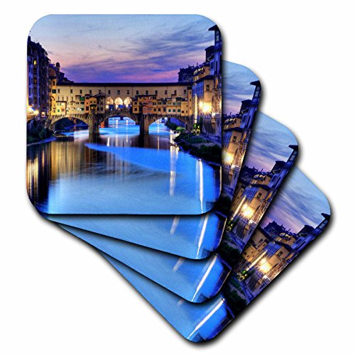 3dRose cst_66290_2 Florence, Italy Water and Bridge, Dusk Soft Coasters (Set of 8)
