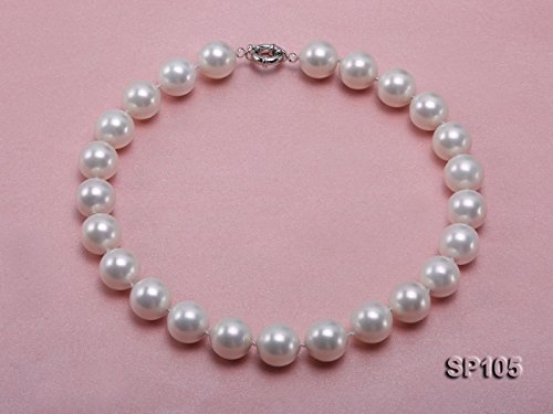 Stunning 16mm white seashell pearl necklace, made with top quality round seashell pearls.