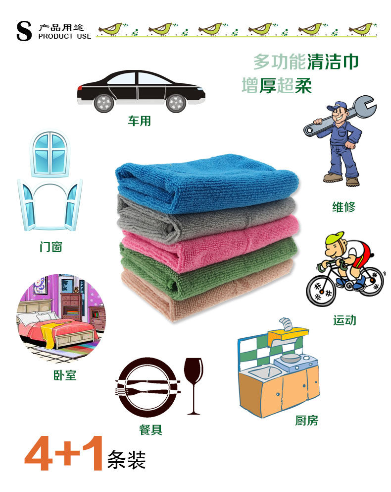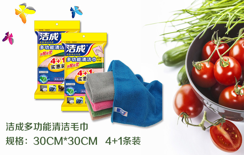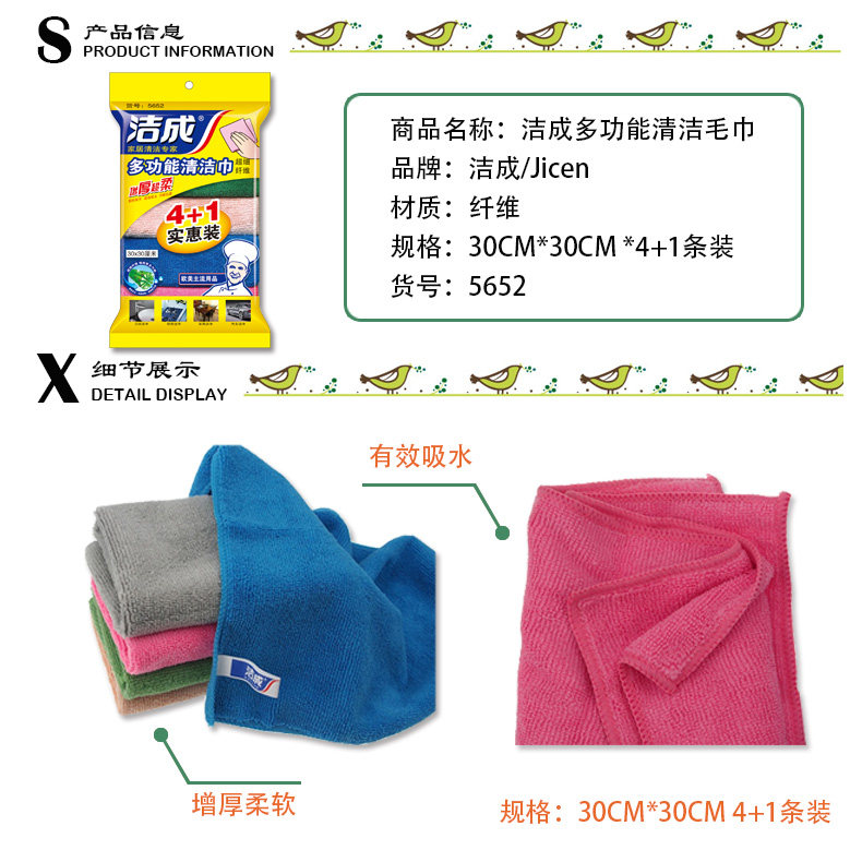 商品名称:洁成多功能清洁毛巾30*30CM*4+1条 纤维抹布