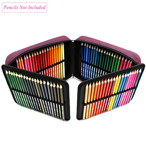 YOUSHARES 120 Slots Pencil Case - Standable Dense Oxford Handy Multi-Layer Large Zipper Pen Bag for Prismacolor Colored Pencils, Watercolor Pens, Gel Pen, Color Pen, Cosmetic Brush and More (Magenta)