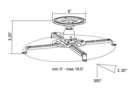 UNIVERSAL PROJECTOR MOUNT fits the majority of projectors on the market. Distance between mounting holes on back of projector must be 19.5” or less