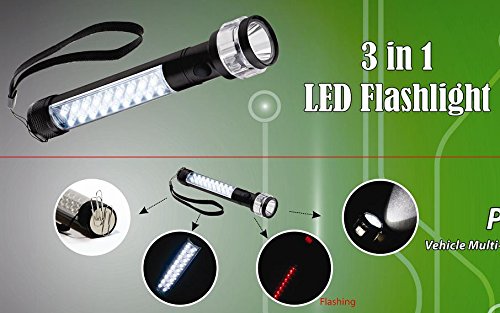 Multi-Purpose 3 in 1 PowerLED Flashlight - Super Bright normal flashlight- White lantern side LED- Emergency Red Flashing LED- Strong Magnetic Base