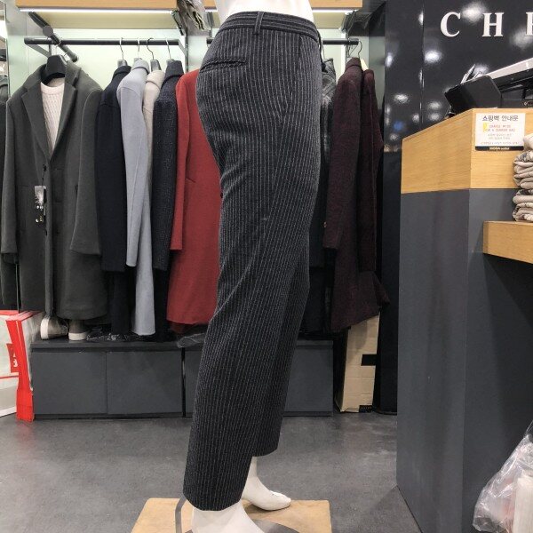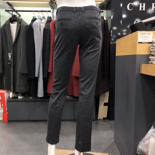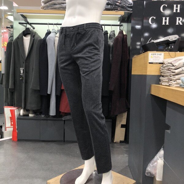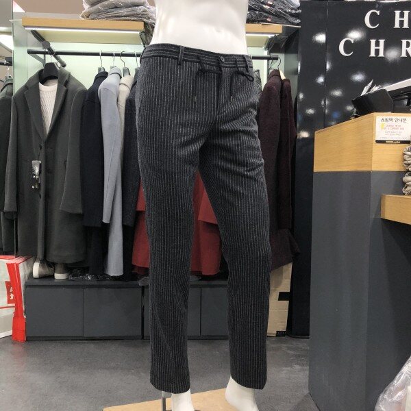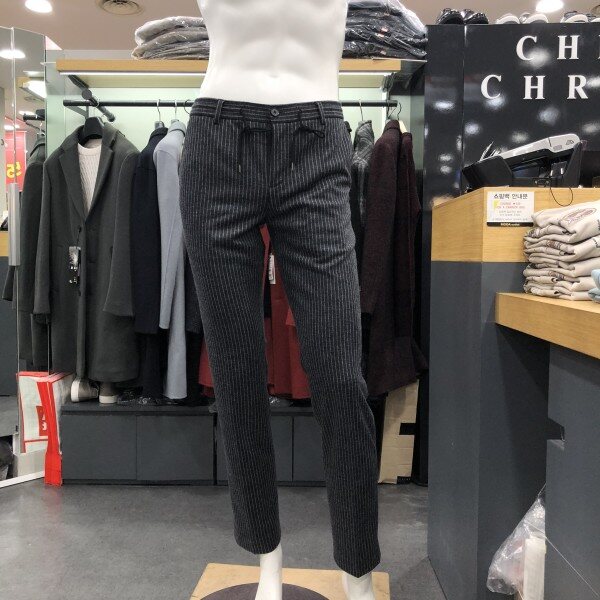 허리 전체 스트링밴드 적용으로 착장시 편안하게 입으실수 있는 스트라이프 패턴의 슬랙스 팬츠 입니다 겨울 시즌 내내 착장이 가능한 스타일입니다 스트라이프 패턴으로 모던하면서 세련된 연출이 가능한 스타일로 같음 스타일의 자켓 상의가 있어 셋업연출 가능합니다 져지원단으로 신축성이 좋아 편안하게 착장 가능합니다