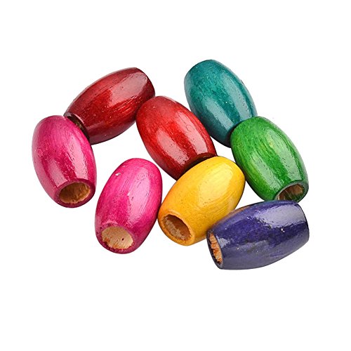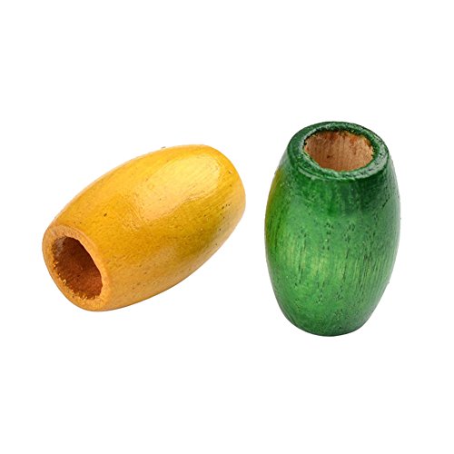 Pandahall 20PCS Assorted Barrel Wooden Beads Oval Wood Beads, Dyed, Lead Free Mixed Color 30x20mm, Hole: 10mm