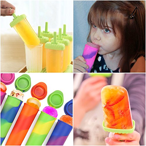 Skymore Popsicle Molds Set-Includes Set of 6 Reusable Popsicle Molds and Set of Silicone Ice Pop Maker Molds, BPA Free DIY Frozen Ice Pop Maker, Great Gift Kit for Yogurt or Freeze Pops