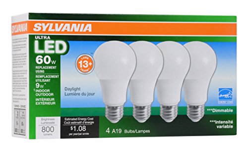 Sylvania Home Lighting 78040 LED Bulb 60W Equivalent Daylight Color 5000K Ultra A19, 4 Piece