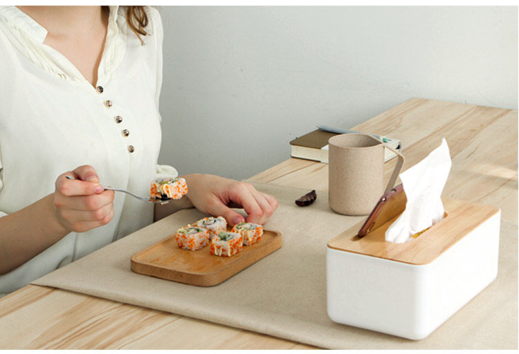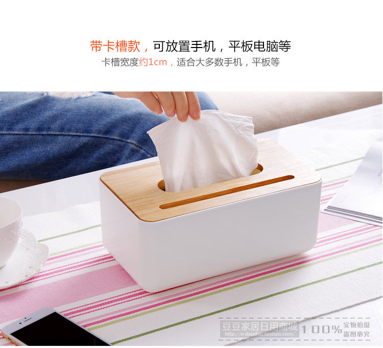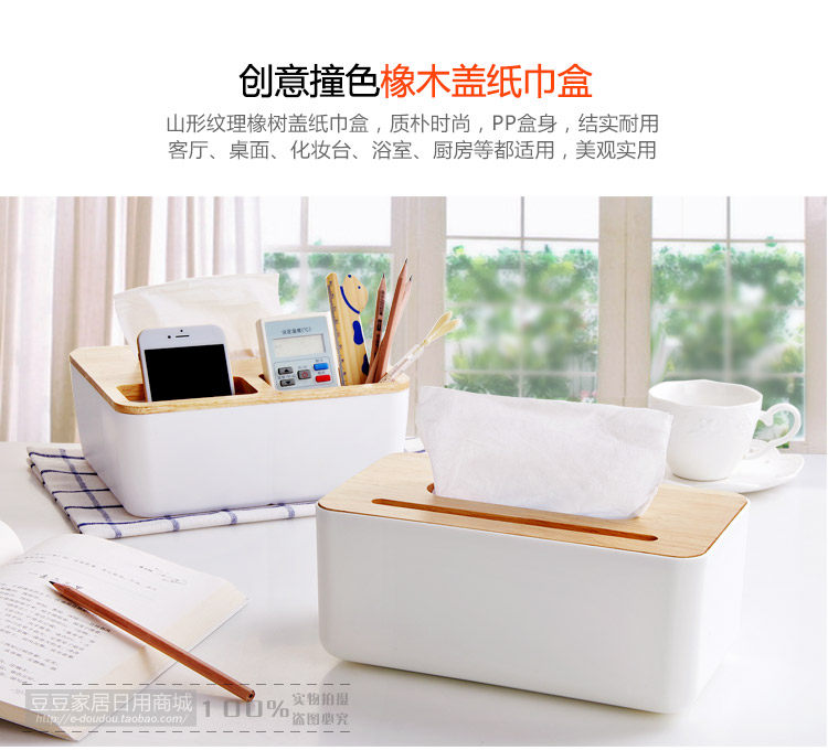 Creative collision color, wood cover + PP two materials, oak storage box, good texture. Placed pumping paper to facilitate your life, with a card slot money, can be placed mobile phones, tablet and so on.
