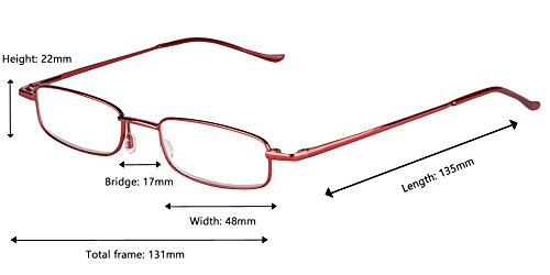 SOOLALA Lightweight Compact Reader Reading Glasses Reader w/ Pen Clip Tube Case, Red, +2.5D