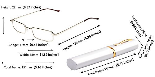 SOOLALA Lightweight Compact Reader Reading Glasses Reader w/ Pen Clip Tube Case, GoldSilver, +1.75D